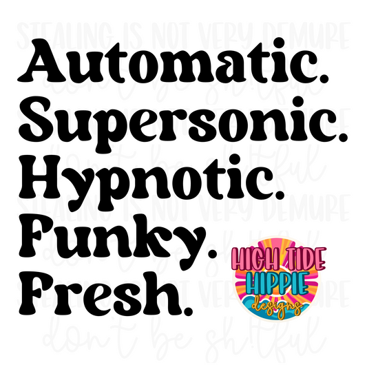 Automatic. Supersonic. Hypnotic. Funky. Fresh. PNG DIGITAL DOWNLOAD